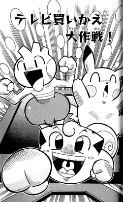 (Japanese: テレビ買いかえ大作戦! Buying a Replacement TV: Serious Mission!) the eleventh chapter of the Pocket Monsters HGSS manga created by created by 穴久保幸作 Kosaku Anakubo.