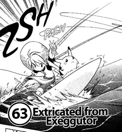 Extricated from Exeggutor (Japanese: VS ナッシー VS Nassy) is the 63rd round of the Pokémon Adventures manga.