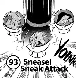 Sneasel Sneak Attack or Sneaky Sneasel (Japanese: VS ニューラ VS Nyula) is the 93rd round of the Pokémon Adventures manga.