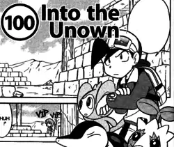 Into the Unown or Fighting Symbols, Unown (Japanese: VS アンノーン VS Unknown) is the 100th round of the Pokémon Adventures manga.