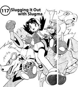 Slugging It Out with Slugma or VS Slugma (Japanese: VS マグマッグ VS Magmag) is the 117th round of the Pokémon Adventures manga.