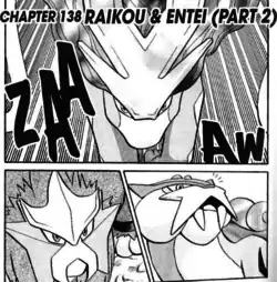 Really Raikou & Entirely Entei II or Raikou & Entei (Part 2) (Japanese: VS ライコウ そして エンテイ (パート2) VS Raikou and Entei (Part 2) is the 138th round of the Pokémon Adventures manga.