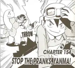 Yikes, It's Yanma! or Stop The Pranks, Yanma! (Japanese: VS ヤンヤンマ VS Yanyanma) is the 154th round of the Pokémon Adventures manga.