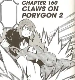 Playful Porygon2 or Claws on Porygon2 (Japanese: VS ポリゴン2 VS Porygon2) is the 160th round of the Pokémon Adventures manga.