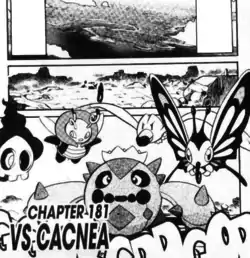 Creeping Past Cacnea/VS Cacnea or A New Story (Japanese: VS サボネア VS Sabonea or 新たなる物語 A New Story) is the 181st round of the Pokémon Adventures manga.