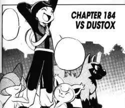 Distracting Dustox/VS Dustox or Training for the Contest (Japanese: VS ドクケイル VS Dokucale or コンテスト指導 Contest Coaching) is the 184th round of the Pokémon Adventures manga.