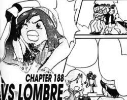 Lombre Larceny/VS Lombre or Inside the Fountain (Japanese: VS ハスブレロ VS Hasubrero or 給水口の中に Inside the Fountain) is the 188th round of the Pokémon Adventures manga.