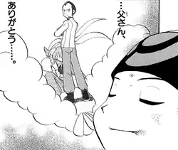 The two land safely, but Ruby faints after realizing that the gift from his father saved their lives. Gabby, Ty, and the Swimmer are glad to see them okay, but Norman quickly gets up and readies a Poké Ball. Before Norman can continue, he receives a call from Winona, a fellow Gym Leader looking to investigate why he wasn't stationed at his Gym. Winona has come to take him back to his Gym along with fellow Gym Leader, Flannery. Having no choice, Norman tells his "idiot son" to not return home until he accomplishes his goal, as a man must complete what he set out to do before he returns home. Although knowing nothing about Pokémon Contests, Norman realizes that Ruby needs his items to finish them and returns his missing Pokéblock Case. As Norman leaves, he tells Ruby to call his mother as well.