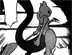 Red decides to head to Seven Island and find Lorelei, but he hears a voice in his head stating that they have already found her. Suddenly, a large spoon with Lorelei sitting inside appears in front of Red. As it tosses Lorelei on the ground, the voice states that it agrees with Red's current state of mind, as it also once went to find itself. Seeing the spoon causes Red to realize that the person in front of him is the Psychic-type Legendary Pokémon created by Team Rocket, Mewtwo.