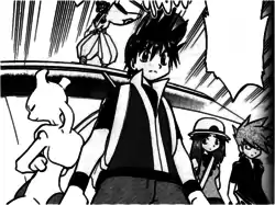 Red, Green, Blue and Mewtwo Too (Japanese: ミュウツー参戦 Mewtwo Participates in the Battle) is the 284th round of the Pokémon Adventures manga.