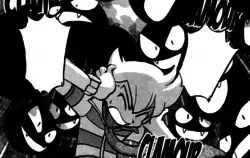 When Diamond and Pearl enter the living room to get to Platinum, a cluster of Gastly suddenly materialize and zap them. Pearl, however, notices a globe of energy among the Gastly which was responsible for the zapping. He finds that his Pokédex does not identify this plasma-like globe of energy, and gets his Pokémon to attack it. However, it dodges the attacks of Chatler and Chimler, then starts making its way through appliances. Suddenly, Pearl realizes that Diamond has gone missing. He frantically looks for his friend, and as soon as he climbs up to an upper floor of the mansion, he notices the increasing number of Gastly and the windows beginning to shake.