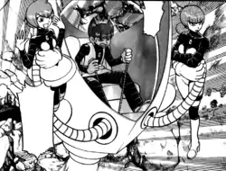 Diamond and Pearl attempt to use Charon's notebook to try and figure out a solution. Seeing that they managed to decode his notebook, Charon gets angry and states that since they're dangerous he must get rid of the two Pokédex holders so that he can obtain Reg as well. Underneath the rubble, Mars, Jupiter, and Saturn watch the commotion. Saturn is furious at Charon for revealing that he only joined Team Galactic to get Sinnoh's Legendary and Mythical Pokémon.
