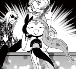 Vullaby instantly goes for Bianca as soon as she strums a chord; Dorothy intercepts with an Electric-type attack to slow Vullaby down. White voices her encouragement to a Bianca short of confidence, and gets Nancy and Solly to occupy Vullaby as well. With enough time to sight-read, Bianca eventually builds up the melody of Relic Song, and the cowering Meloetta begins to respond to it, much to the guitarist's pleasure. Vullaby overthrows its resistance and goes for Bianca again, only for Nancy to block it. Bianca soon manages to play the Relic Song smoothly, allowing Meloetta to sing along to it.