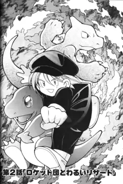 Team Rocket and Dark Charmeleon (Japanese: ロケット団とわるいリザード Rocket Gang and Bad Lizardo) is the second chapter of the How I Became a Pokémon Card manga.
