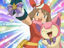 The first match of the second round put Jessie against Erica. The battle ended rather quickly as Jessie was disqualified for cheating, giving Erica a free pass to the finals. The battle between May and Joshua, on the other hand, was a hard fought one. It ended with an explosion caused by the clash of May's Skitty's Blizzard and Joshua's Houndoom's Flamethrower. Having won this battle, May advanced to the final round, where she faced Erica. She initially had trouble dealing with Jynx's Psychic attack, but managed to win the match after Skitty's Assist became Fire Spin and knocked Jynx out. This victory gave May her fifth Contest Ribbon, allowing her to enter the Hoenn Grand Festival.
