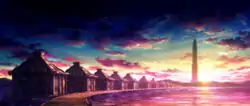 Where the morning sun smiles upon the waters. (Japanese: あさひが みずべを てらす まち The town where the morning sun shines upon the waters.)