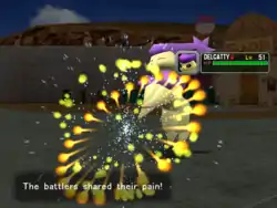 | Misdreavus slams its body into the opponent. Then, a beam of energy comes out of the healthier Pokémon, transferring its health to the weaker Pokémon. | |||