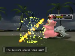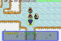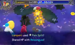 In Red Rescue Team and Blue Rescue Team, and Explorers of Time, Darkness and Sky, Pain Split is a move with 22PP and 100% accuracy. It targets enemy in the front, distributing its and user's HP equally between the two. This move is affected by Taunt.