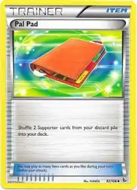 The Pal Pad was first introduced in the Pokémon Trading Card Game during the Japanese XY Era. Released as one of the XY-P Promotional cards, the Pal Pad Item card features the debut artwork by new illustrator, PLANETA. This Trainer card allows a player the ability to recover two Supporter cards from the discard pile, and shuffle them back into his or her deck.