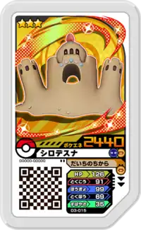 Palossand (Japanese: シロデスナ Shirodesuna) is a Grade 3 Pokémon Ga-Olé disk. It is part of the third Dash set.