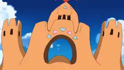 Palossand debuted in A Shivering Shovel Search!, where it evolved from a Sandygast, trapping Ash inside its body.