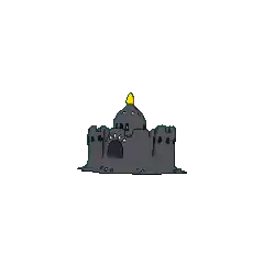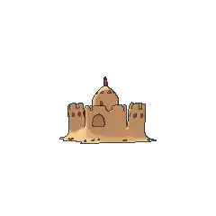Palossand has been referred to as the Beach Nightmare. Each grain of Palossand's body has a will of its own. It controls adults to make them build it a sand castle, which provides it a disguise and defense. However, Palossand is able to replenish any sand it loses on its own. It has the power to control the sand. The shovel on its head rotates when Palossand searches for prey and is believed to function as a radar. It enjoys the life force of Pokémon and captures small Pokémon by creating a sandy vortex. The bones of its victims are kept beneath it and traces of its victims' ill will are left wherever Palossand passes. This is said to be the genesis of new Sandygast born from the souls it gains from victims.[1]. As seen in the anime, Palossand can manipulate its size and can grow to the size of a building. Palossand can be found at beaches, however it hates the water. It cannot maintain its castle-like shape during heavy-rain storms.