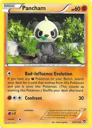 Pancham (Japanese: ヤンチャム Yancham) is a Fighting-type Basic Pokémon card. It is part of the Furious Fists expansion.
