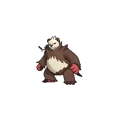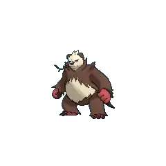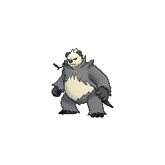 Despite its cantankerous demeanor, Pangoro is kind to those it considers to be its friends and it does not tolerate those who pick on the weak. With arms powerful enough to snap a telephone pole, it charges into battle like a berserker, heedless of any damage it might suffer. Pangoro can destroy a dump truck in one punch and utilizes this strength when pummeling its opponents. Many Trainers find themselves smitten with its lively nature; however, those who wish to train a Pangoro for themselves will have to fight one. It lives to engage in duels with Obstagoon. Pangoro and its pre-evolved form, Pancham, are the only known Pokémon capable of learning Arm Thrust in Pokémon Sword and Shield. In the past, Parting Shot held this status.