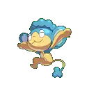 Panpour is based on a monkey and a fountain. It may also be based on a geyser or may be a visual pun on Sea-Monkeys. It, along with its two contemporaries, seem to inspired by the three wise monkeys motif; with its eyes closed, Panpour represents "see no evil".