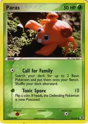 Paras (Japanese: パラス Paras) is a Grass-type Basic Pokémon card. It is part of the EX FireRed & LeafGreen expansion.