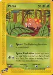 Paras (Japanese: パラス Paras) is a Grass-type Basic Pokémon card. It is part of the Aquapolis expansion.