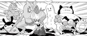 In Pokémon Adventures, there are technically no limits to how many Pokémon a Trainer can have on hand beyond what the Trainer can physically carry. However, Trainers are still limited to a maximum of six Pokémon for official battles, such as in the Pokémon League. In A Flaaffy Kerfuffle, Professor Oak explained that the Pokémon Association determined six to be the ideal maximum at which a Trainer could give all Pokémon on hand sufficient care and attention.