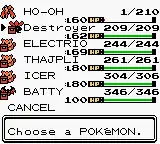 In Generation II, color was introduced, along with gender, and both can be seen on the party screen. However, the icon range was still low, though higher than in Generation I. The Moves section of the summary allowed switching orders and power to be shown along with type. PP was still visible, and the party screen itself kept the same format. In Pokémon Crystal, some Pokémon got unique party sprites, such as Snorlax.
