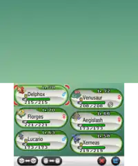 In X and Y, the party screen is almost the same except Pokémon in party are now always jumping unless fainted, in which fainted Pokémon just sit still. While all Pokémon have their unique icons updated, these icons are no longer animated. Sprites were replaced by models (players can no longer view the back but by tapping it causes it to perform one of the Pokémon's species-based attack animations instead), can move from one Pokémon to another by sliding the stylus or tapping the Poké Balls located on the right of the summary screen, can move from one item to another by sliding the stylus and no longer drawing circles around the Pokémon to levitate.