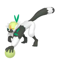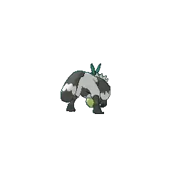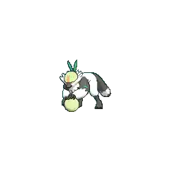 This Pokémon creates troops of 20 to 30 members. Each troop has a leader that picks 10 of the strongest members to search for food. Passimian tend to get into territorial disputes with Ambipom in their search for comfortable trees, in which they win half the time. This Pokémon's battle strategy involves throwing Berries at opponents, hard ones for damage and soft ones to obscure vision, and confusing opponents by throwing the Berry to other troop members. A troop's leader is the member that can throw these Berries the farthest. Through rigorous training, the troop improves its coordination, teamwork, and skill in handling Berries. Some Passimian are unable to handle the intensity and flee from the troop. In place of a troop leader, a captive Passimian looks to its Trainer for leadership. If its Trainer has poor form when throwing Poké Balls, it will refuse to obey.[1]