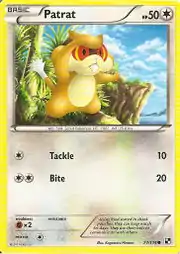 Patrat (Japanese: ミネズミ Minezumi) is a Colorless-type Basic Pokémon card. It was first released as part of the Black & White expansion.