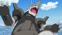 In Familiarity Breeds Strategy! it was shown to have evolved into Aggron. As Paul's first Pokémon, it went up against Pikachu in the Lily of the Valley Conference match against Ash. With about even strength, Ash made the decision to switch to Infernape. After being successfully burned by Flare Blitz, it was knocked out by an exceedingly powerful Mach Punch. It was one of the two Pokémon used by Paul to uncover Ash's strategy, the other being Gastrodon.