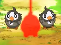 • Three of Ash's Pokémon have evolved while battling Paul: Turtwig into Grotle, Staravia into Staraptor, and Chimchar into Monferno. Both Turtwig and Staravia evolved while battling Honchkrow. Paul also witnessed Monferno's later evolution into Infernape.