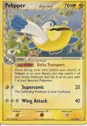 Pelipper δ (Japanese: ペリッパー δ Pelipper δ) is a Lightning-type Stage 1 Pokémon card. It is part of the EX Crystal Guardians expansion.