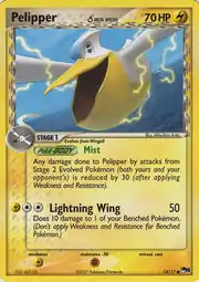 Pelipper δ (Japanese: ペリッパδ Pelipper δ) is a Lightning-type Basic Pokémon card. It is part of POP Series 5.