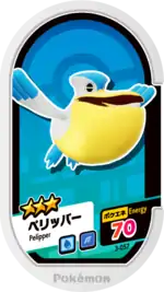 Pelipper (Japanese: ペリッパー Pelipper) is a Grade 3 Pokémon Mezastar tag. It is part of the third set.