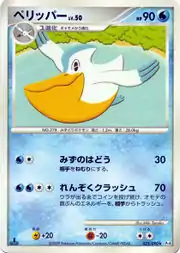 Pelipper (Japanese: ペリッパー Pelipper) is a Water-type Stage 1 Pokémon card. It is part of the Arceus expansion.