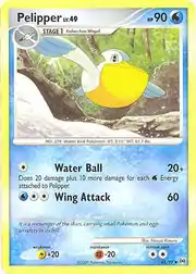 Pelipper (Japanese: ペリッパー Pelipper) is a Water-type Stage 1 Pokémon card. It is part of the Arceus expansion.