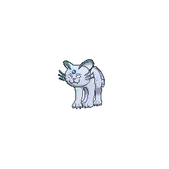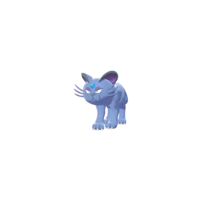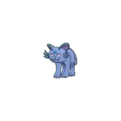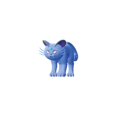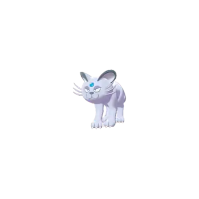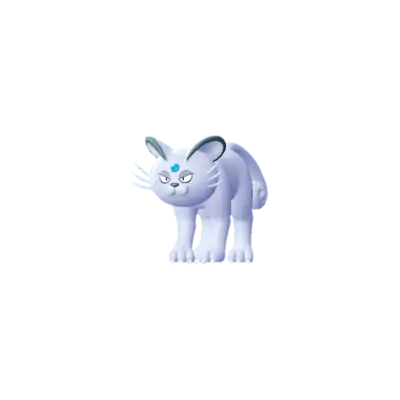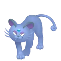 Alolan Persian has a body that is similar to its regular counterpart, but it has blue-gray fur. Its face has a different shape, being larger and more rounded with noticeable jowls. This distinctive face, along with its high-class softer-than-velvet fur coat, is admired by the people of Alola. Its eyes are usually in a half-closed state, and instead of a red forehead jewel, it has a blue jewel. The jewel, though different in appearance, is made of mostly the same material the one on a regular Persian. In behavior, it is described as highly intelligent and having an even higher opinion of itself. It prefers to use underhanded tactics in battle, but its haughty personality causes it to underestimate opponents.