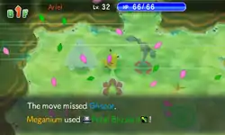 Multiple pink petals circle around or in front of Roserade's body and are then fired at the opponent. | ||