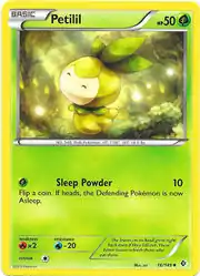 Petilil (Japanese: チュリネ Churine) is a Grass-type Basic Pokémon card. It is part of the Boundaries Crossed expansion.