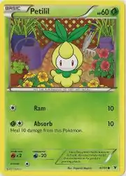 Absorb is a move in the Pokémon games that Petilil can learn. This card's Pokédex entry comes from Pokémon White.