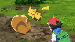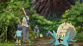 Team Rocket, wanting to steal the revived Pokémon for themselves, accelerated the revival process while no one was looking, causing the machine to be destroyed as the revived Aerodactyl emerged from it prematurely. Goh chased the Aerodactyl into the museum exhibit and battled it with his Golurk to get it under control, while Ash battled Team Rocket. In the end, Ash defeated Team Rocket and Goh managed to calm down and catch the Aerodactyl.