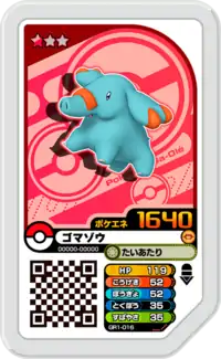 Phanpy (Japanese: ゴマゾウ Gomazou) is a Grade 1 Pokémon Ga-Olé disk. It is part of the first Grand Rush set.