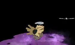 Lunala creates a thin purple portal beneath itself and sinks into it. Seconds later, another portal appears behind the opponent, and Lunala comes out of it before attacking the opponent. | ||